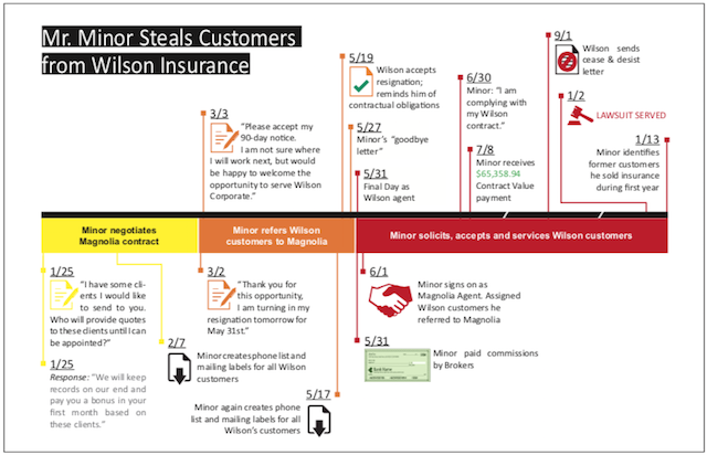 Incorporate graphics into your briefs. This is nothing new. It has been happening for a while, though it still does not happen often enough. Knowing that you will not have the opportunity to stand in front of the judge and point to timelines and such, you should think about just inserting them directly into your briefs with captions that explain what it is that you want the judge to take away from the graphic. Ideally, a well-designed graphic speaks for itself, but there is nothing wrong with giving the judge a little guidance as well with a caption. It is incredibly easy to insert a picture into a word document. You can wrap text around the picture to save space and help you stay within your page limit, or you can attach the graphic as an exhibit for reference (or perhaps both with the one in the brief being smaller and the one in the exhibits being a full-page version).